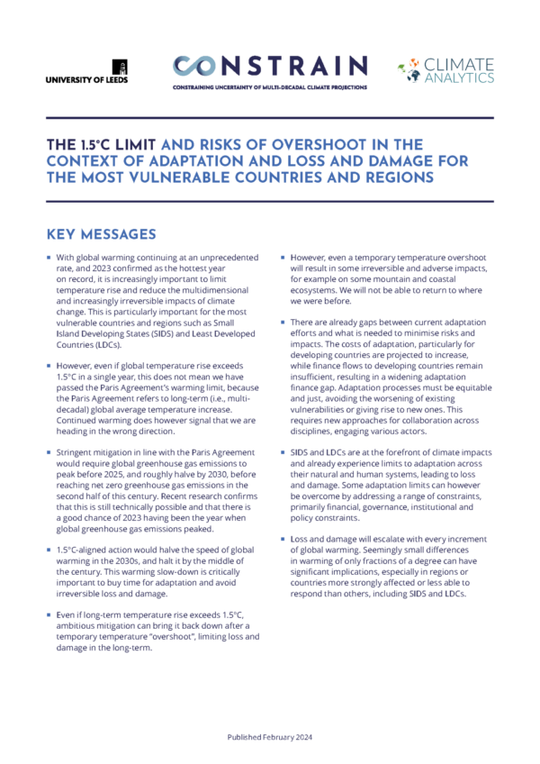 This project is working to develop the science around what the climate impacts of temporarily overshooting 1.5°C would mean for our climate.