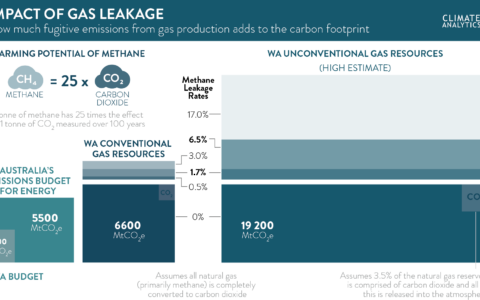 At present these developments focus on conventional natural gas resources but now the development of unconventional resources, including exploiting shale gas in the Canning Basin using hydraulic fracturing (fracking) is under discussion. In addition to environmental impacts associated with fracking, these resources contain much more energy and carbon than conventional resources and using them would entail large carbon emissions. Additionally, because shale gas and other unconventional resources are so much more difficult to extract, they also have a substantially higher risk of leakage and losses of methane – a powerful greenhouse gas released during the extraction process.